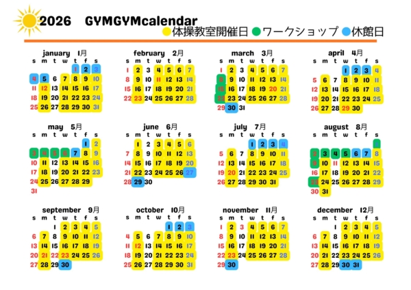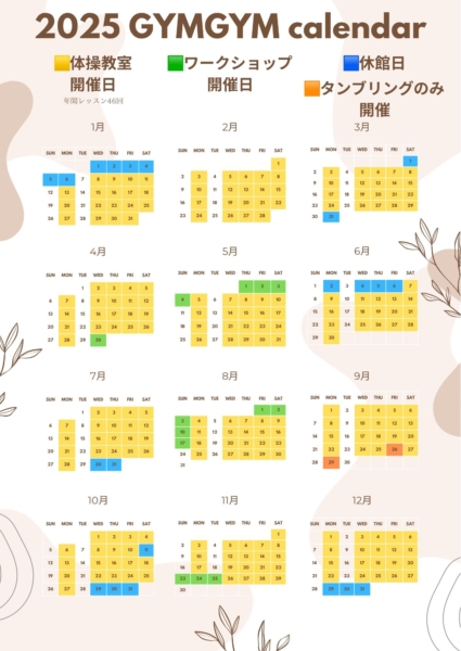 体操教室:年間レッスン回数46回 ※ワークショップ、休館日を除く